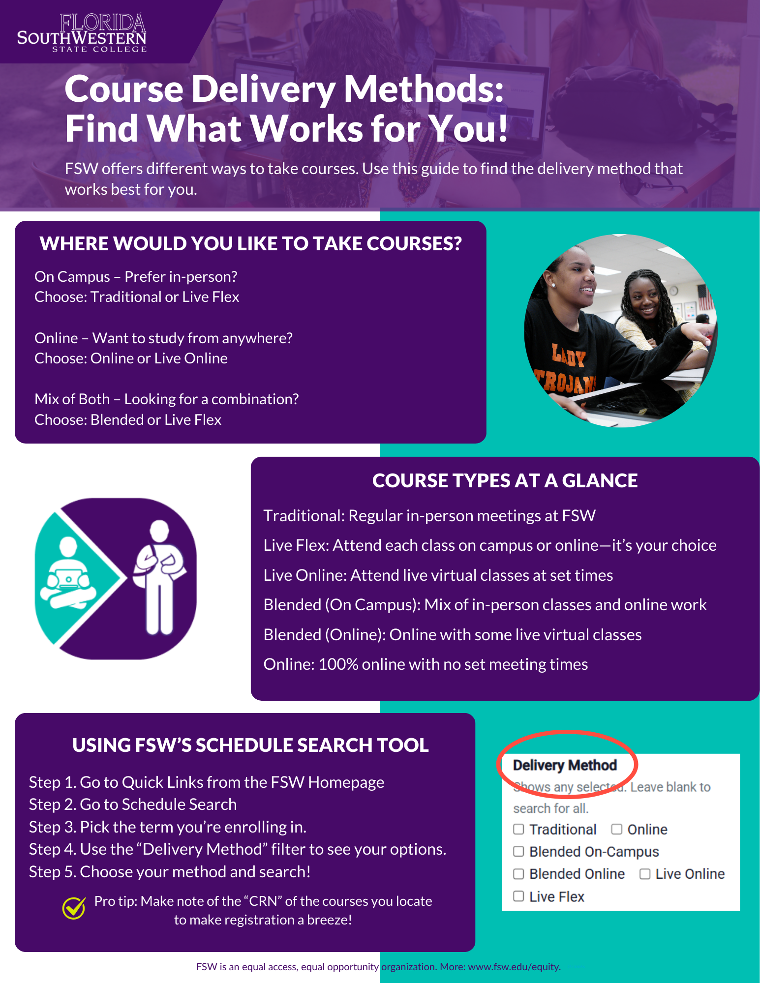 At FSW Online Learning, we offer a range of flexible course offerings designed to meet your individual needs and help you achieve your academic goals.